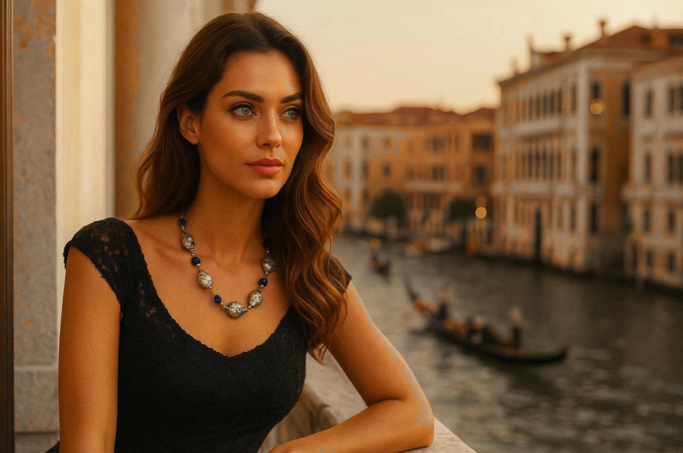 Des Bijoux en Verre de Murano authentiques, qui reflètent la tradition millénaire de l'artisanat du verre à Murano et Venise. Colliers, pendentifs, boucles d'oreilles et bracelets sont incrustés de feuille d'or et d'argent ou de cristaux d'Aventurina, qui brillent comme des étoiles. Les bijoux Kalya Blu sont réalisés à la main, à la flamme du chalumeau et en fournaise traditionnelle vénitienne, par les Artisans et Maîtres Verriers de l'Ile de Murano et Venise.