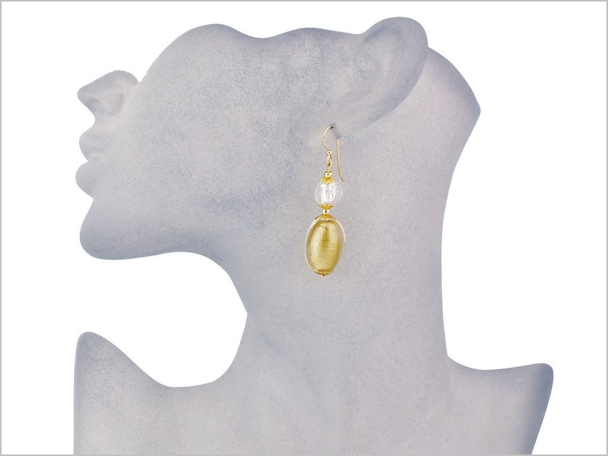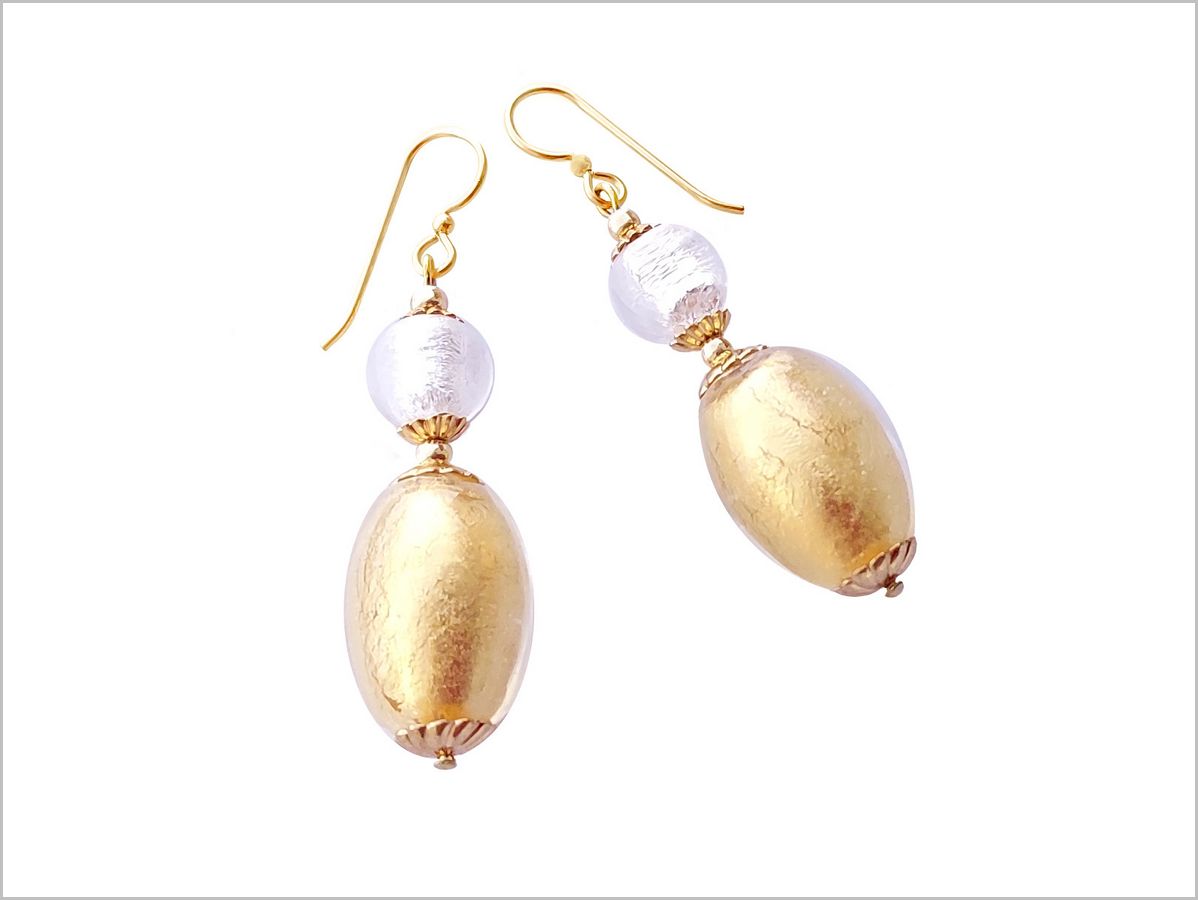 boucles d'oreilles en Verre de Murano aux perles incrustées de feuille d'or et d'argent