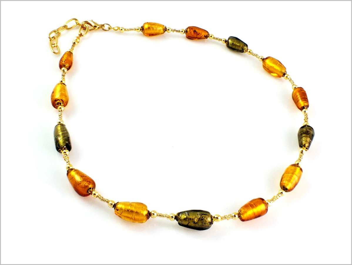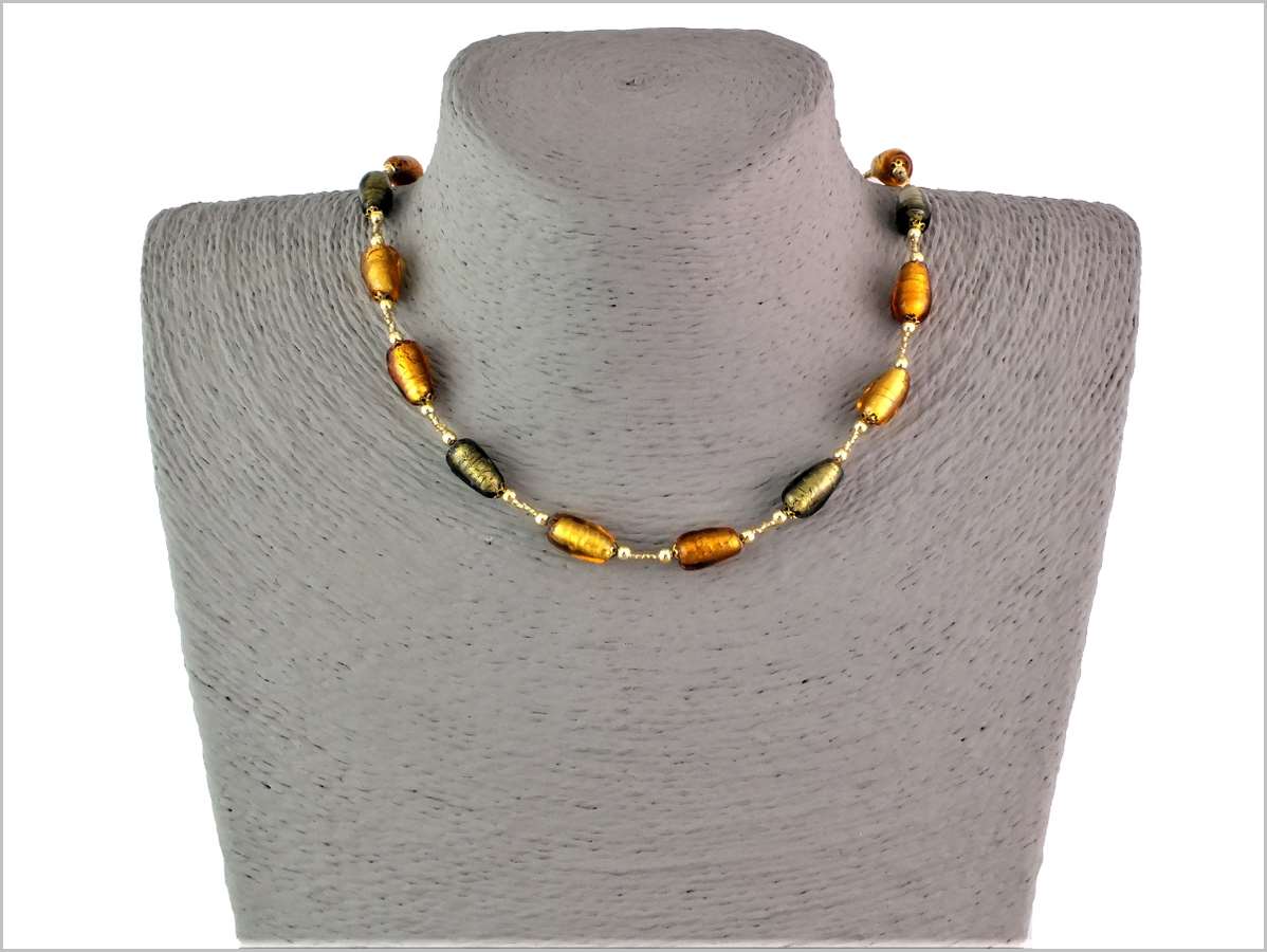 collier en Verre de Murano topaze, ambre et vert mousse