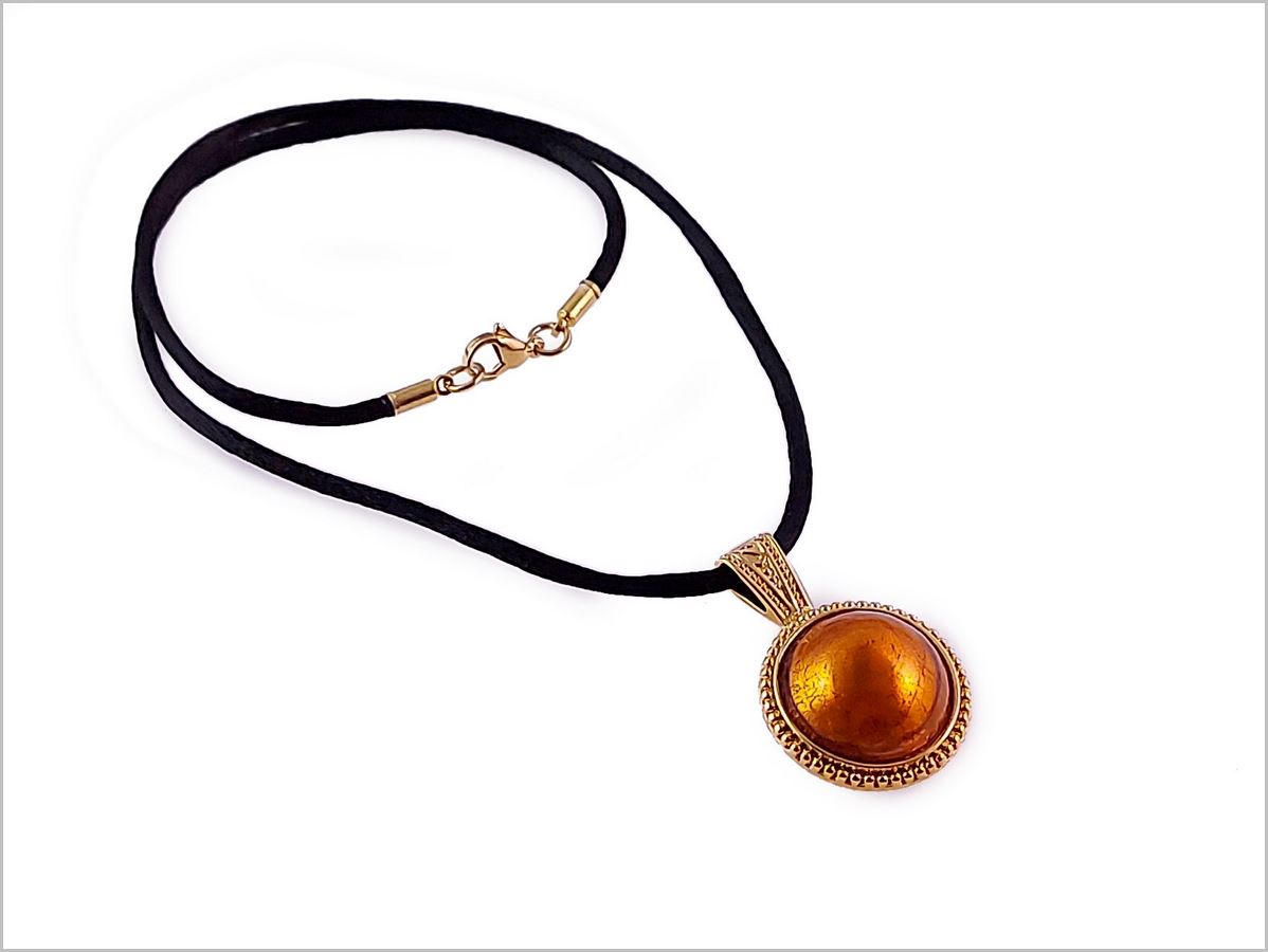 pendentif cabochon en Verre de Murano topaze