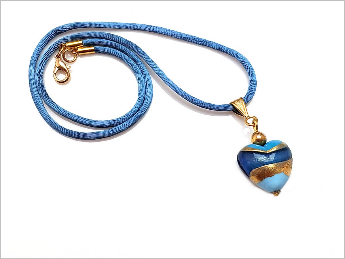 pendentif coeur en Verre de Murano vous ravira par son harmonie de bleu turquoise