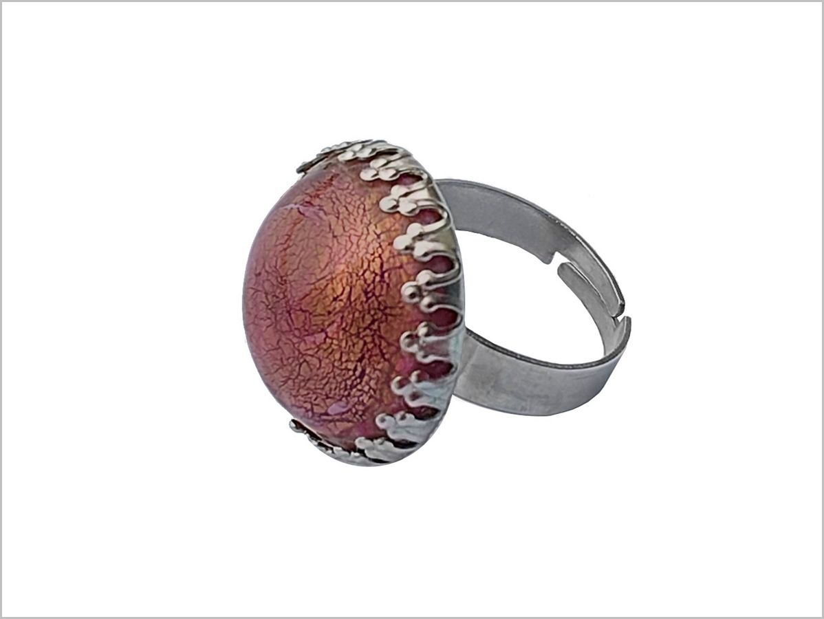 Le cabochon est solidement collé et serti sur une bague réglable en Acier Inox.