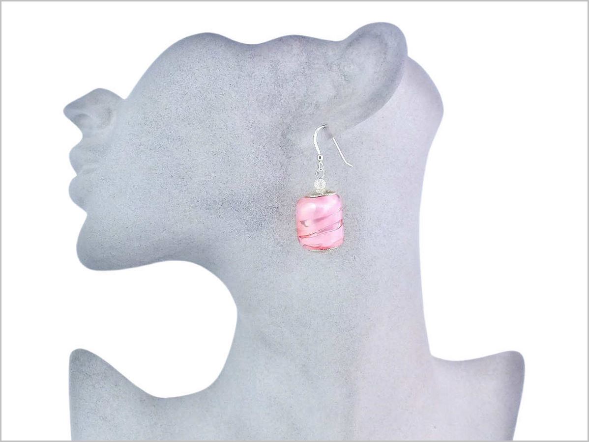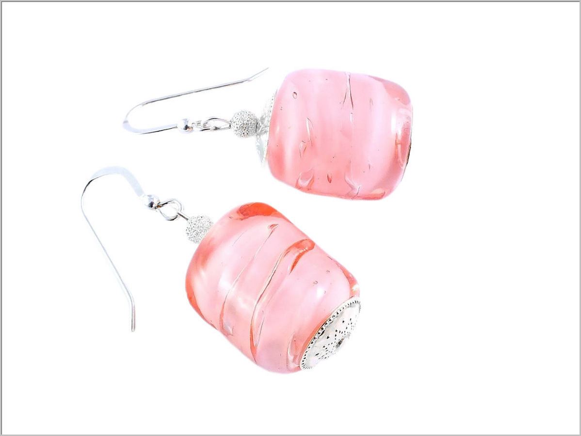 boucles d'oreilles en Verre de Murano blanc porcelaine et rose poudré.